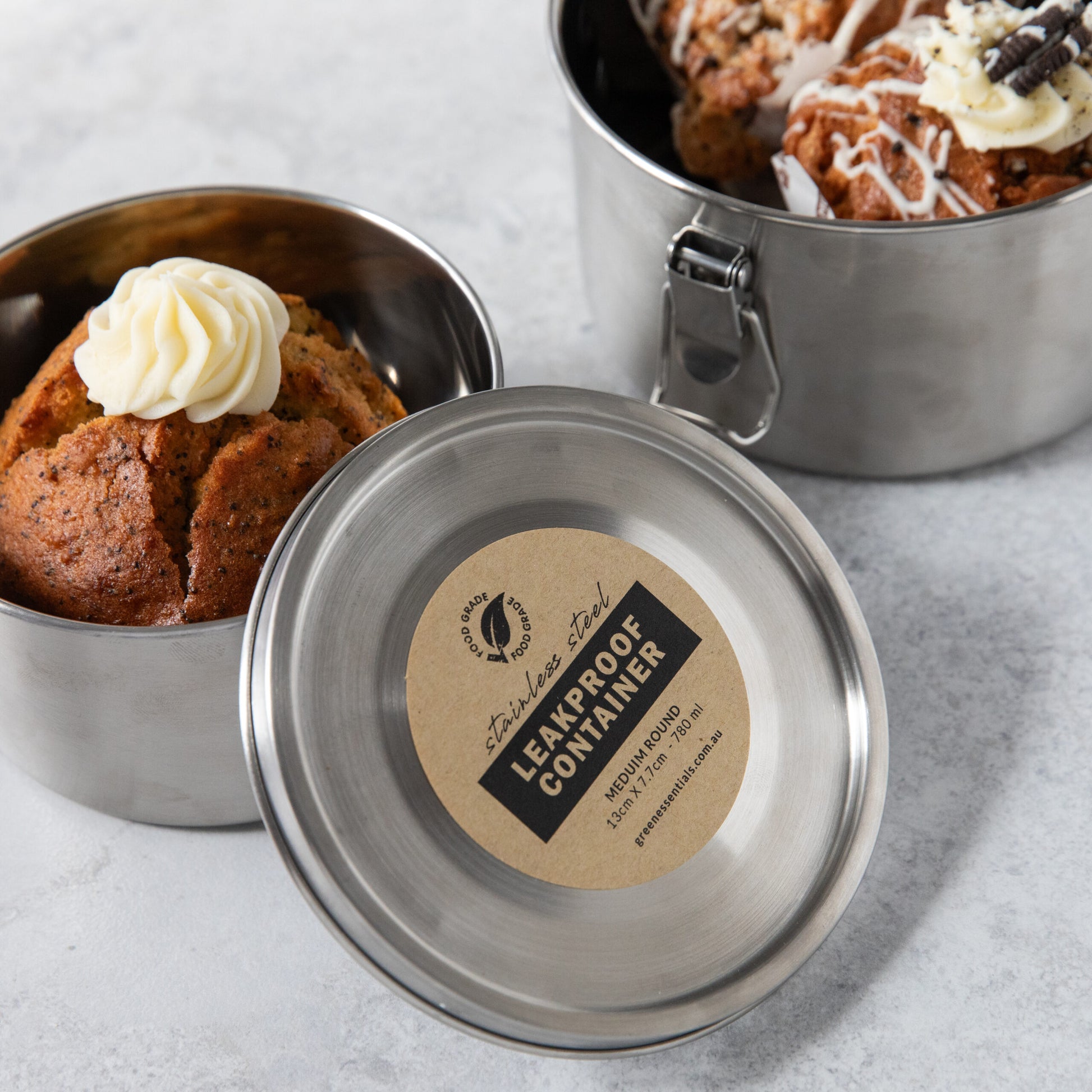 Green Essentials trusted stainless steel containers now come with plastic-free stainless steel lids! Perfect waste-free solutions for kids lunches, picnics, travel, outdoor adventures and bulk shopping. Great for large and small snacks, help reduce single-use packaging, and are versatile enough for many food-storage needs at home and on the go. This round container is also ideal for kitchen organisation, pantry makeovers, meal prep and family leftovers. Leak-proof feature keeps spills at bay. The best zero-waste solution for you and the planet.