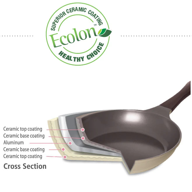 The Healthy Choice for non-stick cookware is a ceramic-based coating, mostly made of silicon dioxide (also known as silica or SiO2), a material commonly found in natural elements such as stone and sand - PTFE, PFOA, CADMIUM & LEAD FREE