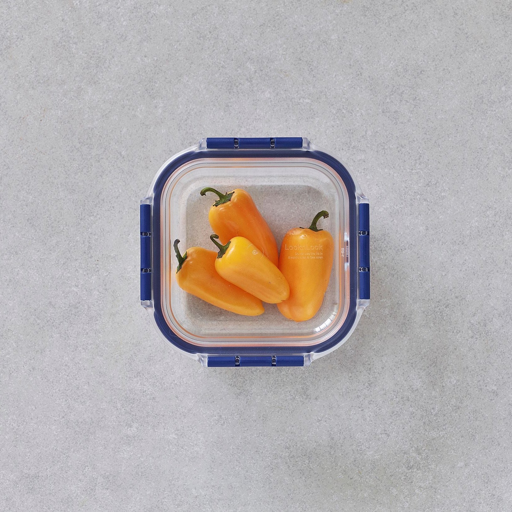 Borosilicate glass containers with a stackable Tritan lid for more efficient storage and added durability. Borosilicate glass containers are safe to use from oven to table and are heat resistant to 400°C. Suitable to transport food straight from the oven to table; or freezer to microwave in one step.