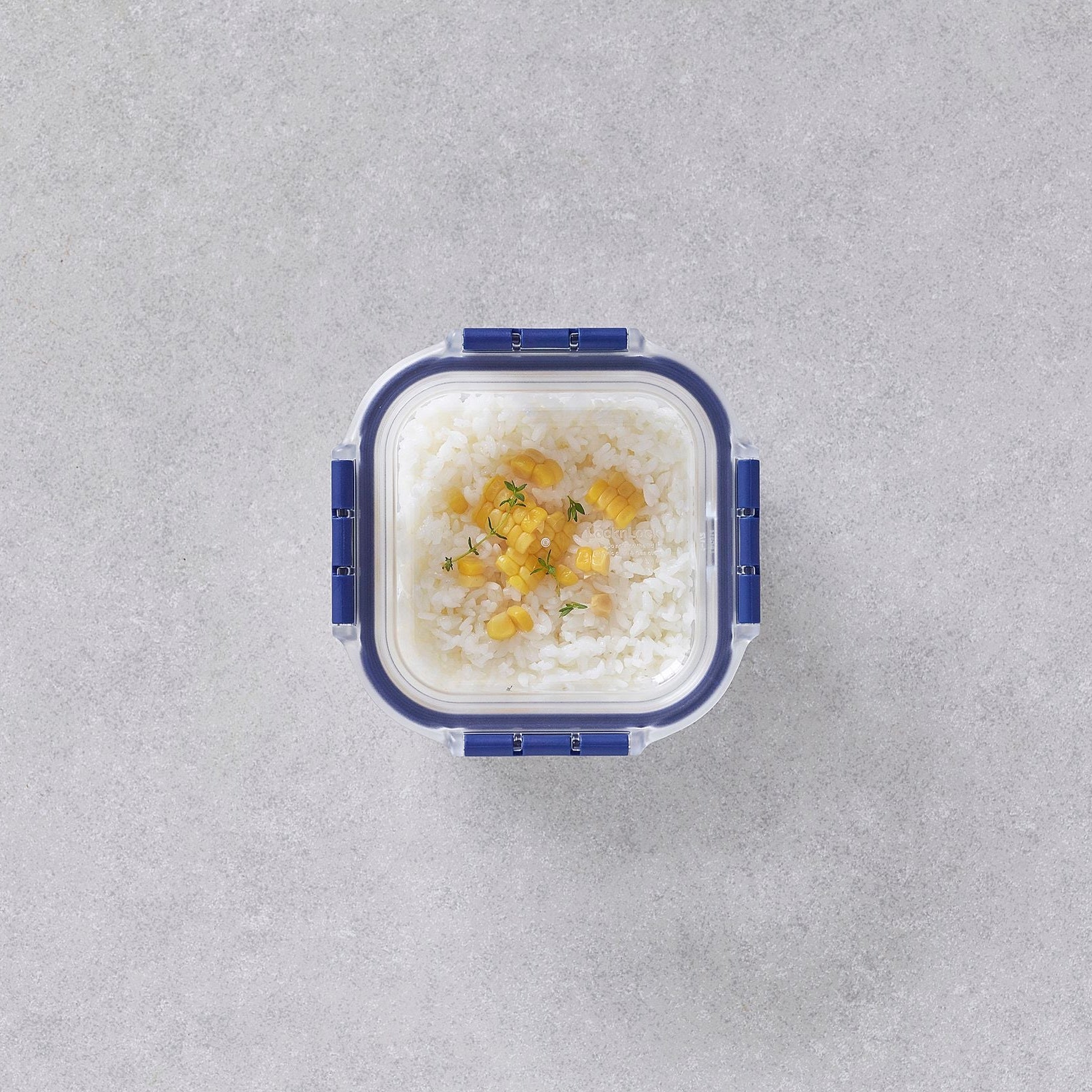Borosilicate glass containers with a stackable Tritan lid for more efficient storage and added durability. Borosilicate glass containers are safe to use from oven to table and are heat resistant to 400°C. Suitable to transport food straight from the oven to table; or freezer to microwave in one step.